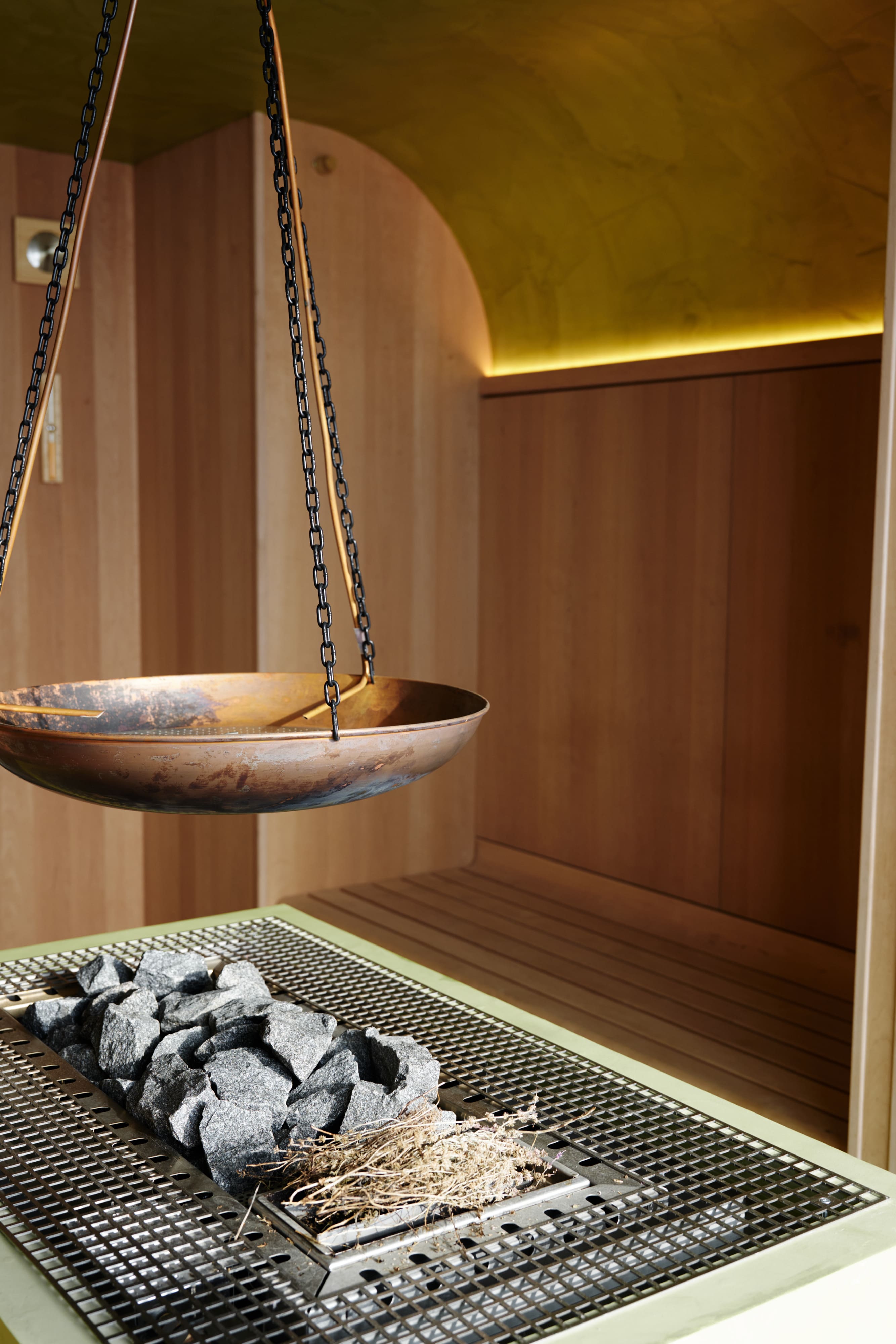 Ароматный пар образуется от сочетания и смеси различных целебных трав с температурой от 55°С до 60°С и влажностью 50%.