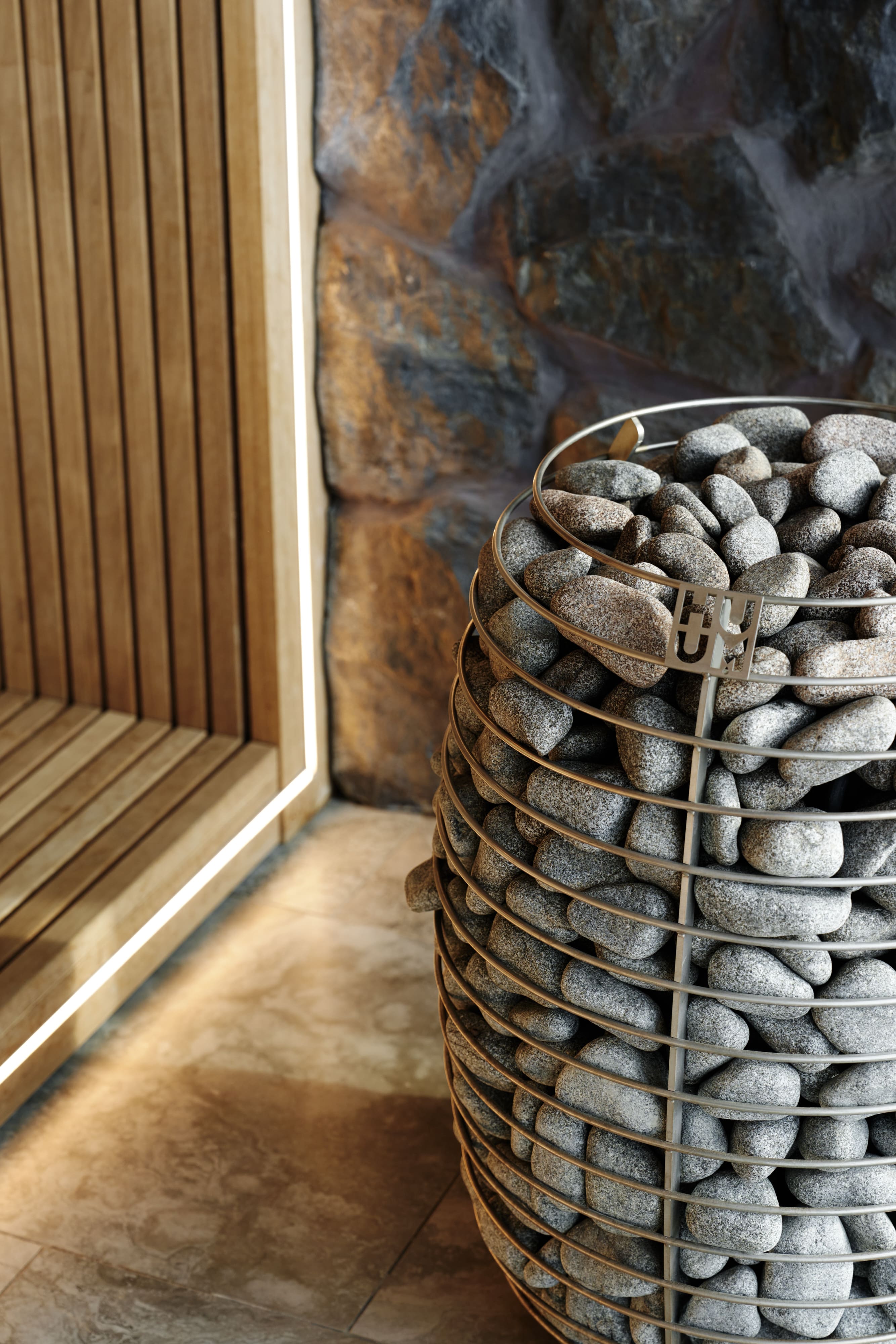 Сухая баня с сухим горячим воздухом и температурой от 90°С до 120°С при относительной влажности от 5% до 10%.